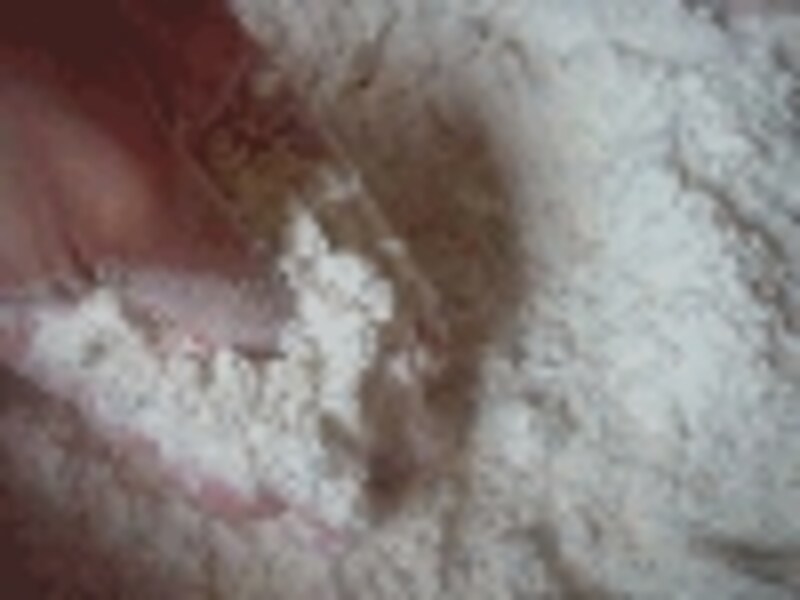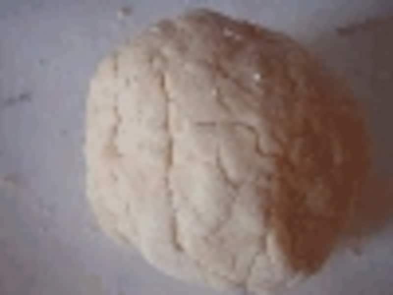 それから少しずつお湯を入れながら混ぜ合わせ、(お湯の量は、生地の固さに合わせて多少調節してください)耳たぶ程度の柔らかさの生地にまとめてゆきます。