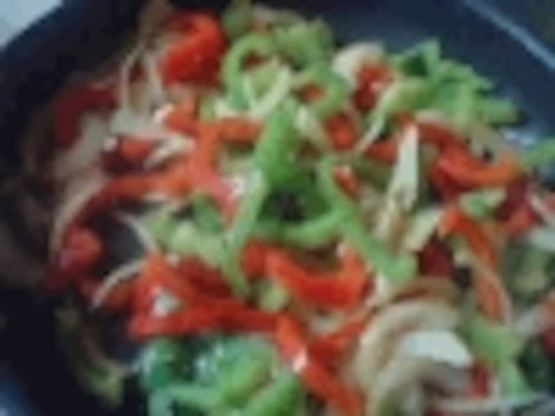 ポイントは、チキンをマリネすること。それ以外はただ炒めてゆくだけなので簡単。彩りがよいので、お弁当にも使えます。