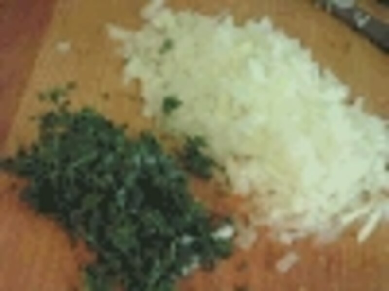 玉ねぎ・にんにく・パセリは、それぞれみじん切りにします。