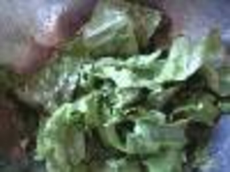 レッドリーフレタスは冷水で洗い水気をしっかり切ったら、2cm幅程度に切り、ボールにいれて上記の調味料を全体によくまぜあわせます。