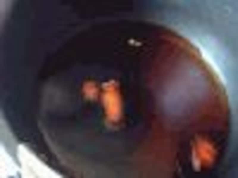 ・揚げる油の量は、ナスがほぼつかるぐらいを目安にします。