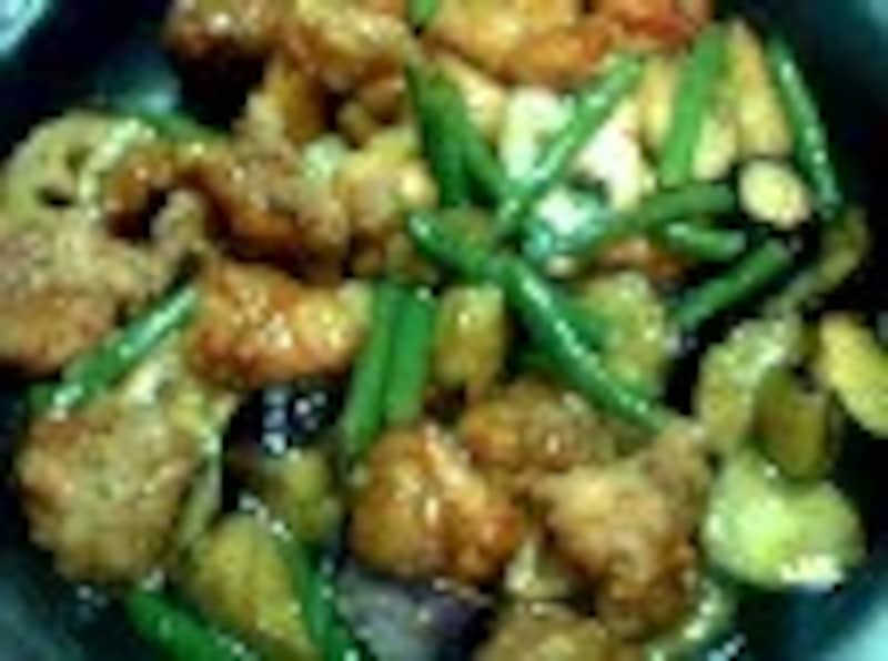 | 揚げ鶏と秋野菜のあんかけ (★★) 4人分:調理 40分 |