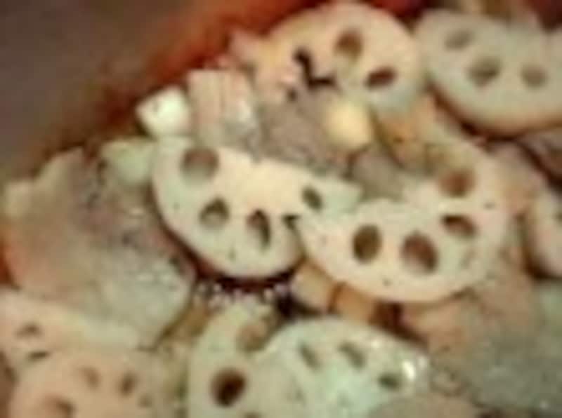 | 豚肉とれんこんの中華炒め煮 (★★)約4人分 調理:50~60分 |