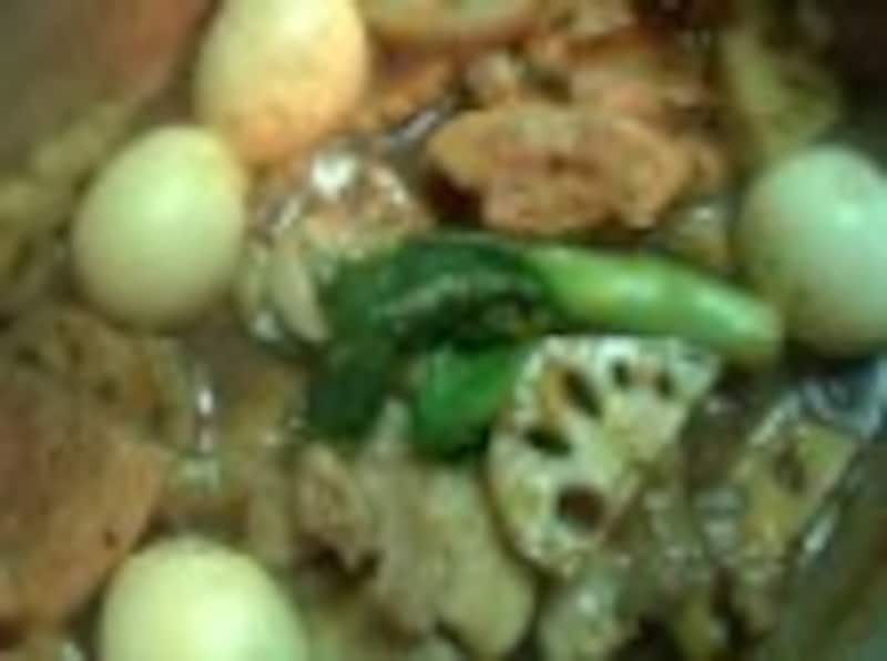 豚バラ肉とれんこん、ゆで卵で、こってり味の炒め煮を。ごはんにもお酒にもぴったり。八角を使うことで、本格中華気分を味わえます。