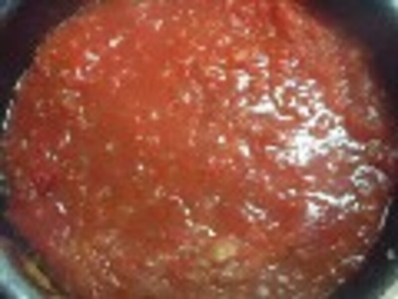 もりつけのとき、先ほどつくっておいたトマトソースを温め直して添えてください。