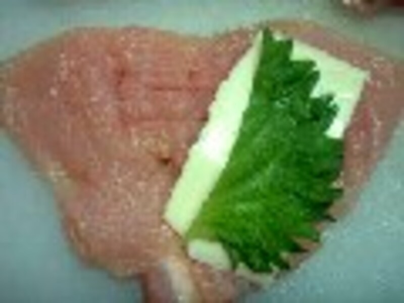 ・はさんだ部分がしっかりついていないと、揚げている時にチーズがはみ出てきます。はみ出さないようにチーズと大葉を収め、しっかりと閉じてください。