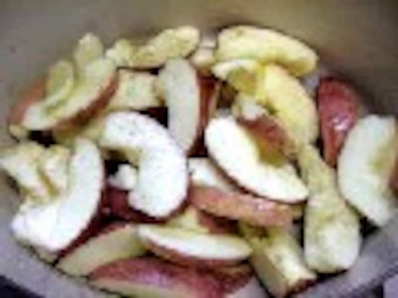 ・調味料をまぜあわせ、10分ほど置いておくと、りんごの水分が出てきますので、その場合は水を少なめにします。