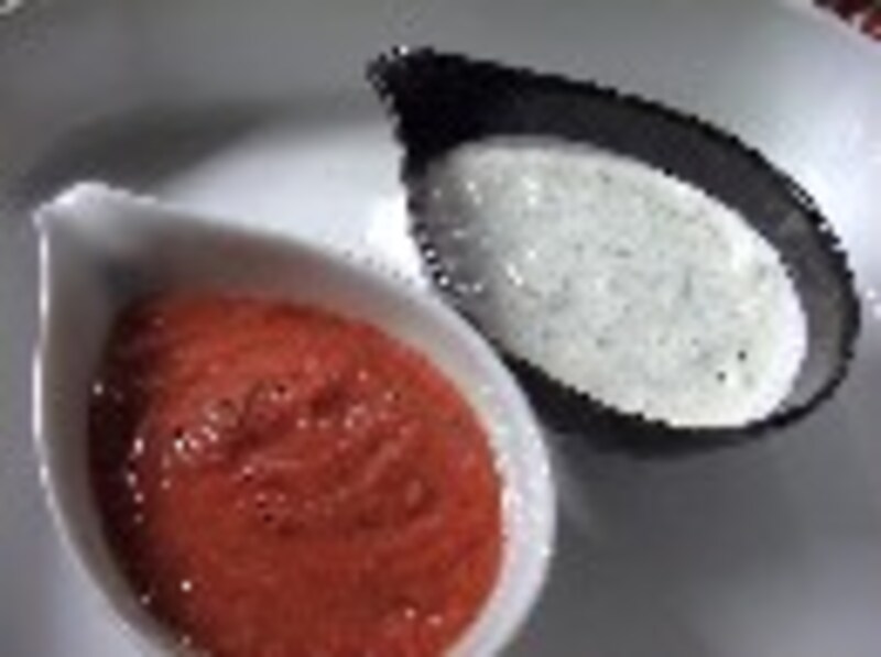 大葉の千切り、サワークリーム、ヨーグルト、生クリーム、レモン汁をよく混ぜあわせて、もう1種類のソースを作ります。