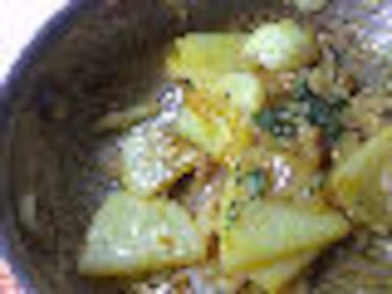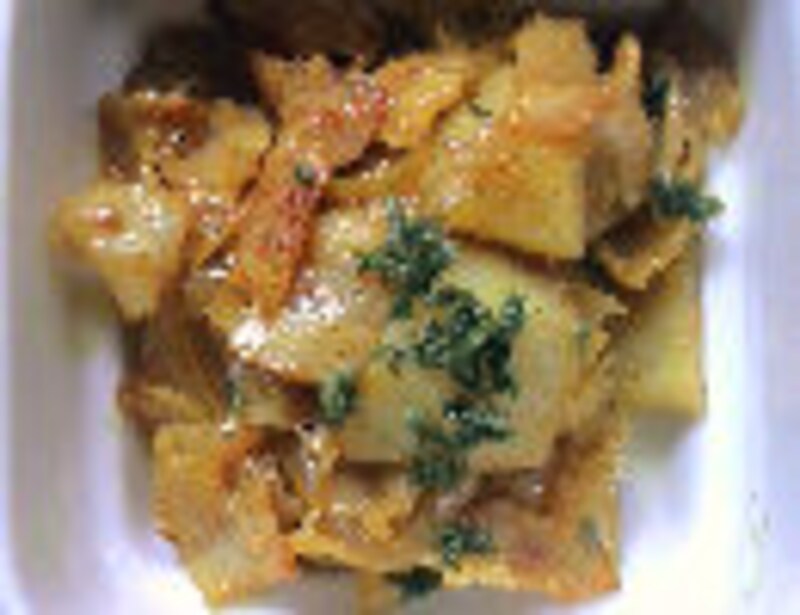 ベーコンは1cm幅に切り、ポテトと玉ねぎは薄切りにする。フライパンにオリーブ油を熱し、玉ねぎとベーコンを炒める。玉ねぎが透き通ったらポテトを加え、軽く炒めて白ワインをふり、弱火でフタをして2分ほど蒸す。ポテトに火が通ったらカレー粉と塩を加えて味を整え、最後にパセリを加える。