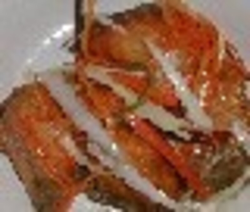 鮭をつかって4品 1-2-3-4 ●韓国海苔揚げ・焼き浸し・南蛮漬け・ろう焼き 材料(4~5人分) 鮭2切れ×4、韓国海苔、長ネギ、人参、セロリ、赤唐辛子、卵黄 下ごしらえ ・鮭は大きめの一口大に切り、薄塩して、酒をふりかけ4つに分ける。 作りかた 韓国海苔揚げ鮭を縦に半分に切り細長くして、醤油と生姜汁をからめて5分位おいておく。片栗粉をはたいて海苔で巻いて油で揚げる。海苔は日本海苔でもかまいません。 焼き浸し鮭を網で焼いてすぐ漬け汁<出汁100cc・醤油50cc・酒30ccに赤唐辛子を一本入れる>に漬ける。長ネギを数センチ焼いて一緒に漬け込むと味が良くなる。 南蛮漬け<酢100cc、醤油大さじ1、砂糖大さじ1~2、赤唐辛子1/2本>を合わせた南蛮酢に、千切り人参、長ネギ、セロリを加える。鮭に片栗粉をまぶして油で揚げて熱いうちにタレにジュッと漬け込む。容器を傾けて魚が汁に浸るようにして野菜をかけておく。 ろう焼きアルミホイルに油を薄く塗り、鮭を並べオーブントースターで裏表焼いて卵黄一個分に味醂少々と醤油少々<あれば白醤油>を混ぜたものを塗り焼くを三回繰り返す。 卵は焦げやすいので注意が必要。この時に残った卵黄を海苔巻き揚げの糊にする。 ●鮭を買うコツ 切り身より半身、半身より一匹丸ごと買ったほうがずっと得ですし、新鮮です。 でも新鮮さを見極めるのにイマイチ自信がない場合は半身を買いましょう。 身が赤いのを選んで下さい。(身を食べるならオスのほうが美味です) 残ったら塩をパラパラふって切り身にしてラップに包んで冷凍するか味噌粕漬けにしてみてください。 味噌5:酒粕4:砂糖1の割合で混ぜて味噌粕床を作り、塩少々をふった鮭を漬け込みます。一昼夜で美味しくなります。 保存する時は味噌をつけたままラップで一つづつ包みます。 味噌粕は洗いおとしてから焼いてください。《焦げやすいので気をつけること》 イクラのほぐし方 海水程度の塩水の中でほぐすように洗うと新鮮なイクラは簡単にバラバラになります <ほぐれにくい時はぬるま湯でして下さい>ザルにあげて水を切って、 醤油と酒を煮切ってアルコールを飛ばして冷ました汁に漬けます。ラップにおひねりのように小分けして包んで冷凍保存しますと自然解凍でいつでも美味しく召し上がれます ◆次の2ページ目は栗とさつま芋の使いまわし技1234次のページへ