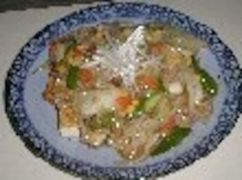 この状態で切って上のアンをかければ中華風おこげあんかけ。
