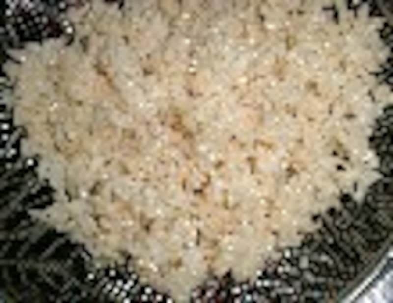 | 懐かしい昔菓子のシリーズの2回目です。今回は、乾し飯(ほしいい)でオコシを作ります。 残ったご飯を天日で乾して、油で揚げて、砂糖醤油をからませただけの素朴なお菓子は、昔の子供達の定番オヤツでした。