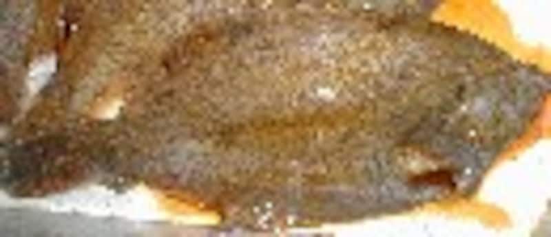 | 庄内浜の春の魚の代表格口細カレイ(本名マガレイ・漁期は3~6月と9~10月)は、おちょぼ口で色白で、まさに庄内おばこのようです。 同じ種類の鰈でも、北海道産になると黄色みをおびてるのだそうです。 「左ヒラメ、右カレイ」と云われるように、鰈は両目が右側に寄ってるのですが、はて、さて、いったい どっちが表なのか裏なのか、下なのか上なのか、よくわからない人が多いのではないでしょうか。 【これがカレイ】 黒い方を上にする。腹を手前におく。 目が右に来る。 これがカレイ! これで平目か鰈かの区別はつきました。が、しかし、目の前のカレイが口細かどうかの判別となると、いささか難しくなります。なにせ鰈は、庄内浜だけでも30種以上も見られるのですから。 魚屋さん(或はスーパーのパックの印刷文字)を信じるしかありません。 でもって、魚屋さんの「口細だよー!旨いよっ!」という 一声でもあれば、それはもう口細以外の何物でもないのですが、パックの字だけでは、かなり不安です。「口細」と名づけるだけで、価格が数倍跳ね上がるのですから、 中には「嘘ばっかり!」な表示もあるわけです。 ところがです。食べたらもう、一目ならぬ一口瞭然!魚肉の味が全く違います。この辺の言葉で「こんみり」という、美味しさを表現する形容詞があるのですが、 まさしく「こんみり、おいしい~」のです。 骨をなめても美味しいと言われる口細カレイです。目は騙せても、舌は騙せないのです。 《焼きたての身をほぐして、お醤油を多めにかけて、混ぜて、炊き立てごはんの上に乗せて・・・・っもう、たまらない!!》 昔はお年寄りが、ぐずって中々寝ない孫をおんぶして、歌ってきかせてるものでした。「早く寝ないと、トトまんま食せぬ、ねんころよ~♪」 ●カレイの裏表! 太平洋側と日本海側とでは違う? 以前調理場で、地元の調理人と、仙台は塩釜出身の調理人とがもめてた事がありました。 ハラワタを取り出すのに、鰈のどっち側に隠し包丁を入れるかで、 “鰈の表はどっちだ!論争”が、勃発したのでした。 《庄内の漁師や魚屋に聞けば、白い方を表だと言うに決まってる。魚屋のザルの上でも、スーパーのパック詰めでも、鰈はいつも白いほうを上にして並んでるもの》 ところが、「仙台では黒いほうが表なんだ!」と塩釜人は主張するのです。 対して、「黒い方を上にして出したら、客に笑われる!」庄内人も一歩も譲りません。 当然、多数決で白が勝ちなのですが、塩釜人は釈然としない様子。でも、しようがありません。ここは庄内、郷に入れば郷に従え、ですから。 料理本等では、煮魚、から揚げなどは、黒い方を上にして盛りつけてる場合が多いようです。 姿造りも黒いほうが上でないとちょっとカッコがつかないですね。 でも、姿焼き鰈の写真は、見つけることができませんでした。皆さんの地域ではどうでしょうか。 ----鰈の表はどっち?! (注) 庄内おばこ=庄内地方の若い女性 トトまんま=焼き魚をほぐして混ぜたごはん 口細カレイは焼いて食べるのが一番なのですが、今日は、から揚げにして甘酢あんをかけてみました。 レシピは次のページです。盛り付けは太平洋バージョン!