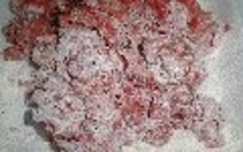 1.牛肉は3cmに切って塩コショウし、小麦粉をまぶす。トマトは湯剥きしてザク切り。