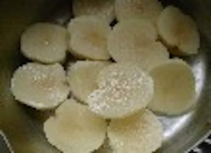 1.じゃが芋6コの皮を剥いて、厚さを半分に切り、水から茹でる。