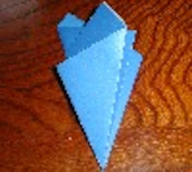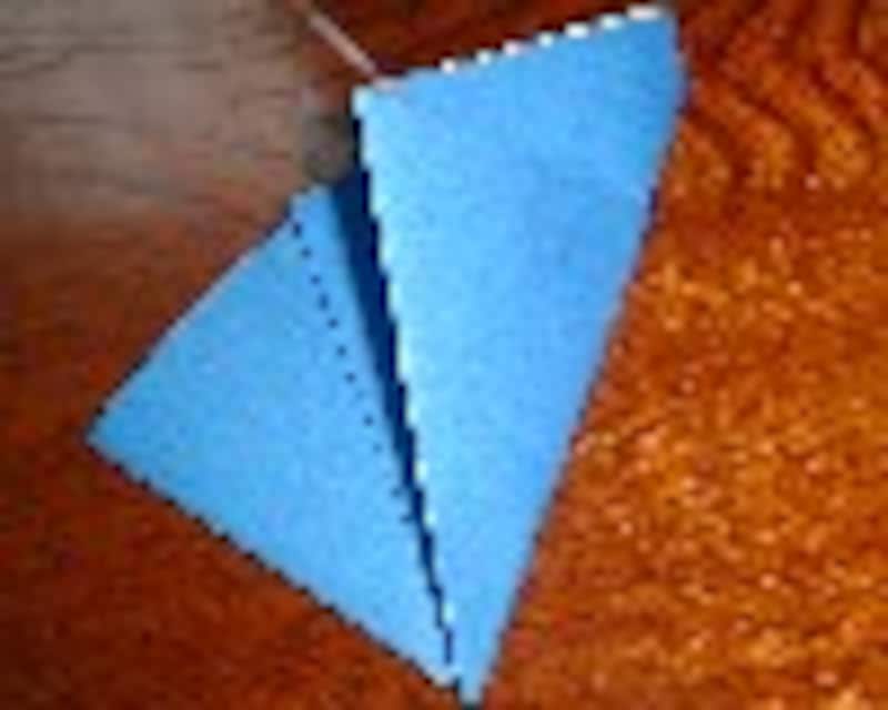 (※上の写真でVの字に見える部分を折り合わせます。)