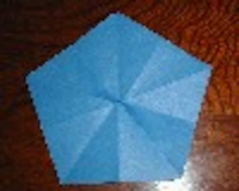 4.真ん中に出来た四角形の二辺を合わせて折る。