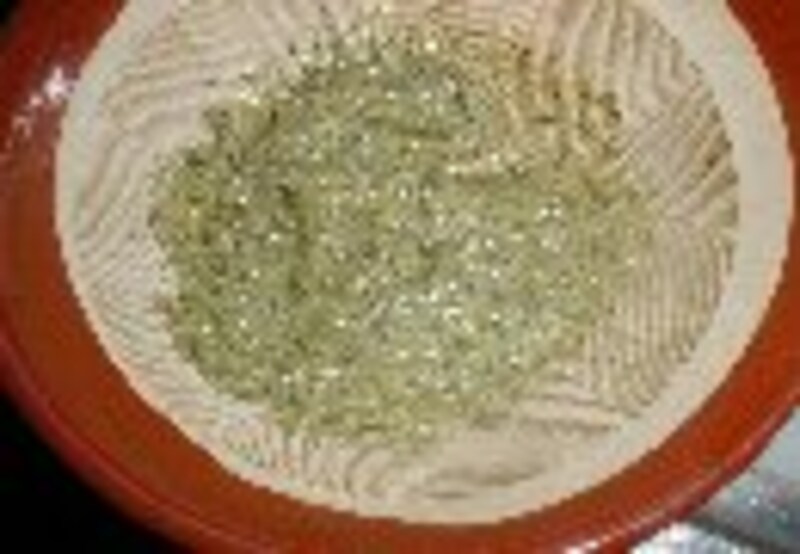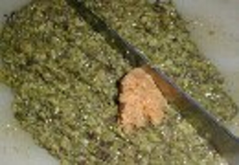 4.すり鉢で山椒の葉をする。