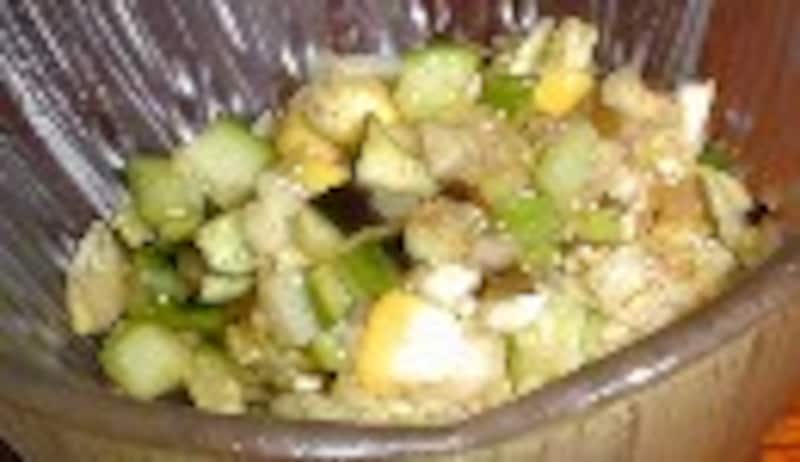 作ってすぐ食べても美味しいのですが、半日ほど冷蔵庫に入れておくと、もっとおいしくなります。 暑くて食欲のない日には、ダシをご飯に乗せて、氷水をかければ、食がどんどん進みます。 材料 茄子、きゅうり、大根、ミョウガ、長ネギ、白菜、昆布、白ゴマ、削り節、酒、醤油 (他に、オクラ、大葉、とうもろこし、ナメコ、枝豆、シラス、生姜など) 作り方 1.野菜を全部、細かく切る。(荒みじん切り) 2.ボールに、なめて塩味を感じるぐらいの塩水を作り、1.を入れ、5分間ほどさらす。3.水を切る。 4.ボールに3.と、ゴマ、削り節、刻み昆布を入れ、酒、醤油、(旨味調味料)で調味する。冷蔵庫で冷やす。![]() 下味の塩加減を味見してから、醤油の分量を調整してください。 ![]() 蒸したトウモロコシをはじいて加えたもの。 ![]() 冷奴にかけて だしのせ冷茶漬けもおすすめ! 【関連ページ】 ・お茶わん一杯分の幸せ(1)【ミョウガたけ】 ・お茶わん一杯分の幸せ(2)【梅干し】 ・お茶わん一杯分の幸せ(3)【ワラビタタキ】 ・お茶わん一杯分の幸せ(4)【烏賊の塩から】 ←前ページのだしにはシラスを天盛りしました。 |