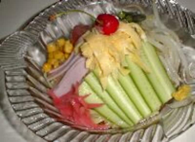 特製!ジャージャー冷やし中華 材料 4~5人分 【タレ】カツオと昆布の出し汁400cc、砂糖40~45g、醤油140~150cc、酒大さじ3、酢100cc、ごま油大さじ1 【具】中華麺、レタス、きゅうり、もやし、ニンジン錦糸玉子、 海苔、カイワレ、練り辛子、白ゴマ 【味付けひき肉】長ネギ10cm、豚ひき肉150g、酒大さじ1、醤油大さじ1.5、豆板醤小さじ1、砂糖小さじ1、みそ小さじ1、塩コショウ 作り方 1.サラダ油を熱し、みじん切り長ネギ、ひき肉を炒め、調味料を加え、汁がなくなるまで炒め煮する。 2.出し汁に砂糖、醤油、酒を加え火を止め、酢とごま油を加えて冷やす。 3.もやしをサッと茹でる。ニンジン、きゅうりは千切り。レタスはちぎる。 4.皿にタレを入れ、茹でて冷水で洗った麺を入れる。 5.野菜と錦糸玉子を盛り付ける。 6.ひき肉をかけ、白ゴマをふり、カイワレ、もみ海苔をかけ、辛子を添える。 いつもの冷やし中華 具はハム・キュウリ・もやし・錦糸玉子・ワラビ・サクランボ・トマト・紅生姜。タレは同じ。 【関連】ジャージャー麺 【編集部おすすめの購入サイト】Amazonで人気レシピの書籍をチェック!楽天市場で人気レシピの書籍をチェック!※記事内容は執筆時点のものです。最新の内容をご確認ください。※衛生面および保存状態に起因して食中毒や体調不良を引き起こす場合があります。必ず清潔な状態で、正しい方法で行い、なるべく早めにお召し上がりください。また、持ち運びの際は保存方法に注意してください。