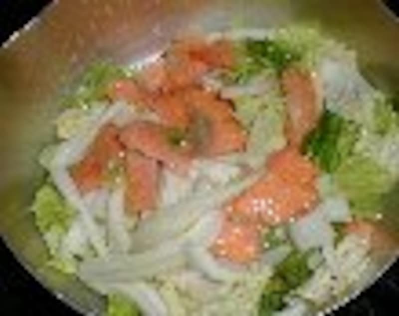 材料3人分 スパゲティー300g、白菜3枚、塩鮭切り身大1切、バター大さじ3、小麦粉、牛乳300cc、固形スープの素1/3個、白ワイン(酒)、粉チーズ大さじ3 作り方 (手順は上段左から時計回り) 1.鮭の切り身の骨と皮を取り除く。 2.三つに切って、5mmの厚さに切る。 3.小麦粉をまぶす。 4.鍋にバター大さじ3とり、鮭を焼く。 5.両面を焼いたら、拍子切りにした白菜を加えて軽くあおる。(あおる:鍋を上下に振って、ひっくり返すこと) 6.牛乳を加え、スープの素、白ワイン(または日本酒)大さじ1を加えて煮る。(あればケイパーも少し加える) 7.茹でたパスタをいれて混ぜ、コショウ少々とチーズを加える。(鮭の塩味が薄い場合は塩を少量加える) ##かんれんページ## ・クリームパスタ2種 カルボナーラ・簡単クリームパスタ ・鮭を使って4品 鮭の南蛮漬け・サケの焼き浸し・鮭ろう焼き・鮭の韓国海苔揚げ ・New!レシピ 2002年3~6月のガイドレシピ 【編集部おすすめの購入サイト】Amazonで人気レシピの書籍をチェック!楽天市場で人気レシピの書籍をチェック!※記事内容は執筆時点のものです。最新の内容をご確認ください。※衛生面および保存状態に起因して食中毒や体調不良を引き起こす場合があります。必ず清潔な状態で、正しい方法で行い、なるべく早めにお召し上がりください。また、持ち運びの際は保存方法に注意してください。