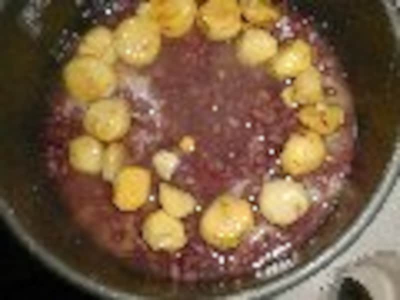![]() 普通、おこわは蒸し器や蒸篭で蒸して作りますが、炊飯ジャーでも美味しく炊くことができます。 今日は、家族のちょっとした記念日やお祝いにも、手軽におこわやお赤飯を作ってあげられるように、 炊飯器で炊く「栗おこわ」を 紹介したいと思います。小豆を入れましたが栗だけでもかまいません。 尚、赤飯に使う 小豆ですが、煮すぎると胴が割れて、切腹に通じると云われ縁起が良くないとされ、祝い事の際の 赤飯には小豆でなく「ささげ」が使われる事のほうが多いようです。(地方によって様々) ■材料 5~6人分 もち米4合 ・ 小豆0.5合 ・ 栗15粒 ・ 塩小さじ1と1/3 ・ 砂糖大さじ2 ・ 酒大さじ2 ・ ごま塩 ■作り方 (前日にやっておく事)栗を剥きサッと洗って水気をきり、ポリ袋に入れ、 砂糖大さじ2加えてまぶしつけ、よくもんで砂糖を栗にこすりつけるようにし、そのまま冷凍する。 (栗をホクホク甘くするための一手間) 1.もち米をといで、3時間~一晩水につけ、ザルにあけて水をきる。2.小豆は5倍ほどの水で八分通り茹でる。 (あまり強火にしたり、茹ですぎたりすると、腹が割れるので注意!) 3.炊飯ジャーに餅米をあけて、小豆のゆで汁を加え、おこわ用の目盛りがあるジャーの場合は目盛り通りに、 ない場合は幾分少なめに水を入れ、大さじ2杯の水を取り除き、その分の酒を加える。4.次に、塩小さじ1~1.3杯加え、小豆と冷凍してあった栗を加える。(砂糖がついたままの栗をそのまま入れる) (熱が満遍なく伝わるように、真ん中をあけて栗を置く。) 5.炊き上がったら、さっくりかき混ぜて器に盛り、胡麻かゴマ塩を添える。ポイント 失敗しない絶品栗おこわ。 塩はお好みで加減して下さい。栗なしの、普通のお赤飯を炊く場合は、 少なめの水加減と塩の分量は同様にし、砂糖を大さじ1杯程度加えて下さい。又、普通のお赤飯は、お酒を入れなくていいです。 |
