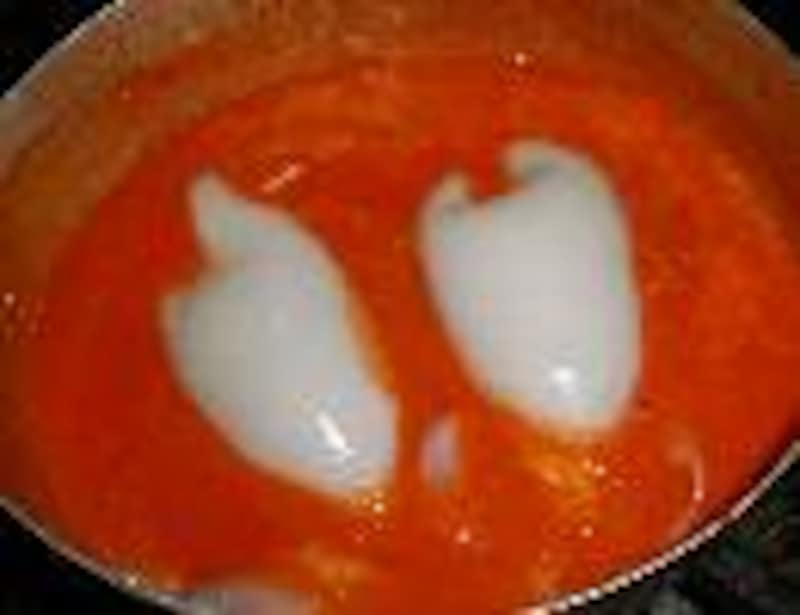 料理をするときはいつも、食べる人の顔を思い浮かべながら作ります。 会心の作ができて、さりげなく、だけどちょっと得意げに、「さあ、どうぞ、めしあがれ」と、さし出した時、 その人の目の輝きを見るのがたまらなく好きです。 「今日は、どんな料理で驚かせてやろう、、」そんな 事を考えながら作ったいかめしリゾット。今夜の食卓の主役です。 洋風いかめし ■リゾットの材料 ・烏賊大3ばい....ワタと足を取り出し皮をむく。 ・ 米2C .....とがなくても良いが、気になるならサッと洗う ・鶏むね肉100g.....ぶつ切りにする ・エビ2匹 .....殻を剥く ・しめじ1/2パック、椎茸3枚.....適当な大きさに切る ・玉ねぎ1/2コ......みじん切り ・スープ6C......鶏がらスープ(或いは、湯+固形コンソメスープ2個)を、温めておく ・粉チーズ.....大さじ1 調味料 <白ワイン大さじ2 ・ オリーブオイル大さじ3 ・ 塩コショウ ・ バター大さじ1 ・ サフランの粉少量 ・ パスタ用のイカスミソース適量> ■トマトソースの材料 ・玉ねぎ.....みじん切り大さじ3杯ほど ・水煮トマト....1缶 ・ニンニク1片.....みじん切り 調味料 <サラダ油大さじ1 ・ バター大さじ1 ・ トマトケチャップ大さじ1 ・ 塩コショウ> ◆作り方 トマトソース 1.サラダ油でニンニクを炒め、香りが出たら玉ねぎを炒める。 2.トマトと他の調味料を加え、煮立ったら火をとめ、ミキサーにかけ、鍋に戻して火にかけ、 一煮立ちしたらバターを加えて溶かす。 リゾット 3.イカの足1パイ分とエビをぶつ切りにし、殻と一緒に小鍋にいれ、白ワインを少しまわしかけ、 蓋をして蒸し煮する。(殻は取り除き、汁はリゾットに入れる) 4.別鍋にオリーブオイルをとり、玉ねぎを炒め、次に鶏肉を加えて炒め、 米を入れて炒める。 5.最後に茸類を加えてさっと炒め合わせたらワインを注ぎいれる。 6.温めておいたスープを最初1/3ほど加えて煮、少しずつ加えて、もったりした固さまで煮ていく。 7.食べてみて、芯が少し残る位になったところで塩コショウで味を調える。 イカメシ 8.リゾットを1/3づつに分けて、一つには粉チーズ大さじ1/2。一つはサフランの粉とエビと粉チーズ大さじ1/2。 もう一つにはイカスミと烏賊の足を混ぜる。 9.それぞれをイカに詰めて、楊枝で縫うようにとめる。 10.トマトソースで10~15分ほど煮込む。 11.煮えたら取り出す。 イカスミの汁が流れ出ると、煮汁が黒くなってしまうので、 煮えたら(イカスミ烏賊飯だけでも)すぐに取り出すこと。 12.皿にトマトソースを敷き、輪切りにしたイカメシを盛りつけ、 刻みパセリと粉チーズをふりかける。 ◆◇お客さま向けの料理◆◇ ・【お刺身盛り合わせ】 ・【信田煮】 ・【塩魚のネギ蒸し】 ・【煮込みハンバーグ】 【編集部おすすめの購入サイト】Amazonで人気レシピの書籍をチェック!楽天市場で人気レシピの書籍をチェック!※記事内容は執筆時点のものです。最新の内容をご確認ください。※衛生面および保存状態に起因して食中毒や体調不良を引き起こす場合があります。必ず清潔な状態で、正しい方法で行い、なるべく早めにお召し上がりください。また、持ち運びの際は保存方法に注意してください。