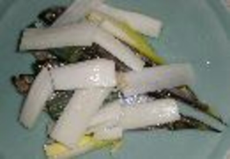 一塩をしたハタハタに、ネギを乗せて蒸しただけの簡単料理。 塩鮭や塩タラで作っても美味しいです。 それとあと一つ、捨てるには忍びない青い部分を、佃煮にしてみました。 3. 塩魚のネギ蒸し ■材料4人分 ・下仁田ネギ1本.......5cm長さの短冊に切る ・ハタハタ8匹.......軽く塩をふり一晩冷蔵庫に入れておいたもの ・生姜少々.......千切り ・昆布少し......ハサミで細く切る ・酒......大さじ1 ・サラダ油......小さじ1 ■作り方 1.皿に魚をのせ、酒をふりかける。 2.ネギ、昆布をのせて、サラダ油をまわしかけ、湯気の上がった蒸し器で15分ほど蒸す。 3.普通のネギでも作れます。 4. 青ネギの佃煮 ■作り方 1.ネギの青い部分を開いて、千切りにし、熱湯でサッと茹でてザルにとる。 2.小鍋にミリン、醤油、水を少量ずつ同量とり、水気を軽く絞ったネギを加え炒りつける。 3.汁が無くなったら七味と白ゴマを加え、火を止める。 温かいご飯に、お弁当のおかずに、おにぎりの具にぴったり! 4.こちらはスライスニンニクとネギをごま油で炒めて、ミリン、味噌、砂糖、水、削り節と いっしょに炒り煮したもの。日本酒に合いそう! ●次のページは豚肉とネギの炒め物 前のページへ1234次のページへ