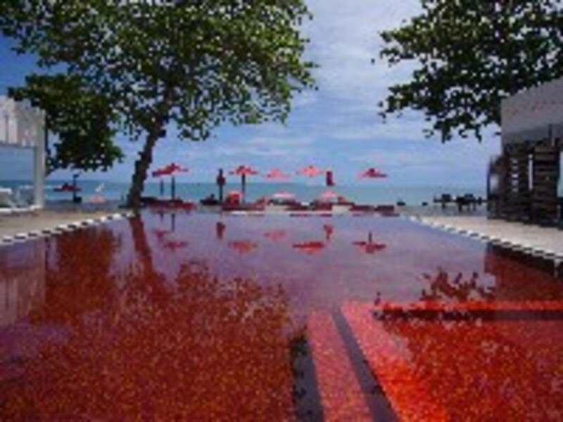 | チャウエンビーチにあるデザインホテル、ザ・ライブラリー。真っ赤なプールが印象的 |
