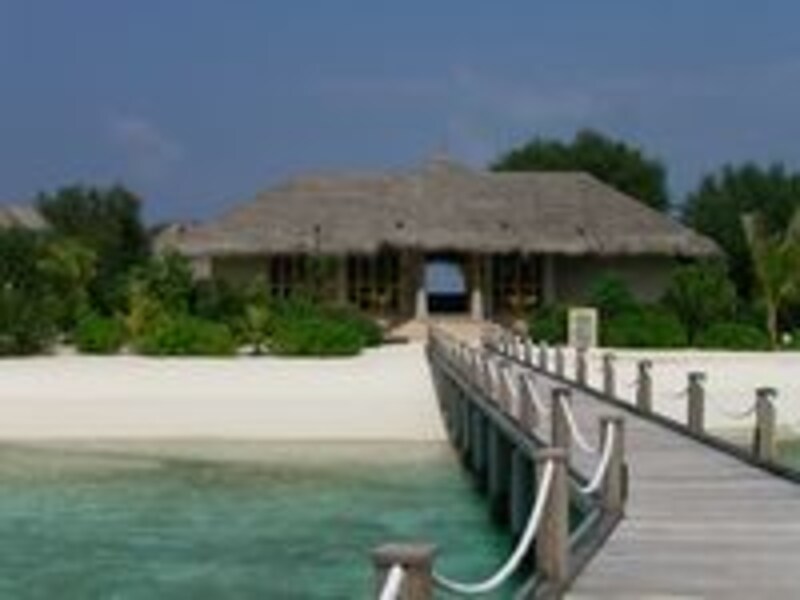| 橋を渡ってアプローチするシェラトン・モルディブ フルムーン・リゾート&スパのアクウム スパ |