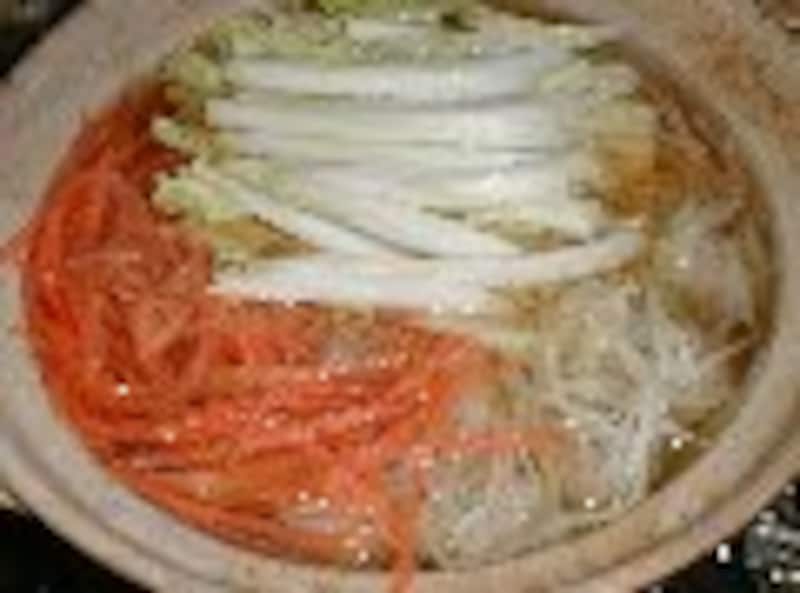 日々の暮らしの中で、さまざまな『困り事』に遭遇するとは思いますが、 そんなのは長い人生の中のホンのイットキの事。 ということで、とりあえず、目の前のちいさな 困ったことから解決しましょうか。では、「時間が無い!給料前!」、そうゆう日に作っていただきたい肉団子鍋を紹介します。 2.ほうれん草のごまよごし 野菜がもりもり食べられる!肉だんご鍋 ■材料 4人分 ・豚ひき肉......300g ・じゃが芋......1コをすりおろし、水を絞る ・長ねぎ........1/2本をみじん切り ・おろし生姜......大さじ1 ・おろしニンニク......小さじ1/2 ・卵......1コ (下味調味料) ・塩小さじ1/3、醤油大さじ1、酒大さじ1、ごま油大さじ1、コショウ少々 (具野菜) ・大根、人参、白菜、長ねぎ、エノキ、もやし、その他 (鍋スープ) ・水......6カップ+ダシ昆布10cm角 ・酒......60cc ・みりん.....60cc ・塩......小さじ1/3~1/2 ・醤油.....50cc ■作り方 1.ひき肉をボールにとり、下味調味料を加えてよく混ぜ、粘りを出す。 2.次に卵とすりおろしたじゃが芋を加えて練り合わせ、長ねぎ、生姜、ニンニクを加えて混ぜる。 3.土鍋に水6カップと、出し昆布を入れて火にかけ、煮立ったら昆布を取り出して 調味料を加える。 4.煮立ったら2.のひき肉を丸めながら入れてゆく。 浮いてきたアクをすくいとる。 5.人参と大根を(野菜切り器で)細くかいて、煮立った鍋に入れる。 6.白菜も同じ太さに切って入れる。 7.エノキを入れ、太さを4つ割りにした長ねぎを入れて、蓋をして数分煮る。 8.粉山椒や七味をかけて食べる。 ◆野菜が細切りなので、早く煮えます。具は他に牛蒡や茸類、春菊、セリ、京菜、春雨なども合います。 ※箸休めには、ほうれん草の胡麻あえ 12次のページへ