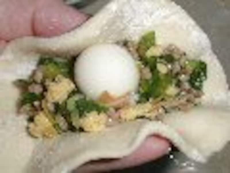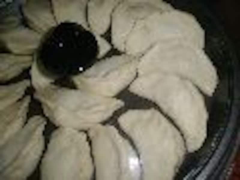 中華焼きまんじゅうの成形と焼きかた 餡と皮(生地)のレシピは前ページ ■成形と焼き 成形 1.1次発酵させた生地を、打ち粉をした台に取り出し、生地のガスを抜きながら、細長くのばす。 2.包丁で20コ位に切る。 3.切り口に粉をつけて手の平で押し、二つ重ねて麺棒で伸ばす。 4.ゆっくりはがすと、同時に2枚できる。 5.具を生地の真ん中に置き、半分に折って指で押えて閉じる。又は、肉まんのように丸くする。 ↑写真のように、数個にうずらの卵を入れて、「当たり」を作るのも楽しい 6.油を薄くぬったホットプレートに並べて蓋をして、室温で15分ほど、2次発酵させる。 発酵を早めたい場合や、室温が低い時は、保温のスイッチを数分間入れる。 焼く 5.ホットプレートのスイッチを入れ、高温にセットする。 6.焼き目がついたら水を1カップ回し入れる。 温度を少し下げて蓋をして、6~7分ほど蒸し焼きにする。 7.蓋を開けて、残った水分を蒸発させ、饅頭にかけないように、油少々を回し入れ、 皮をパリッとさせて出来上がり。 酢醤油を添える。 【ホットプレートで作るパエリア】 ★前ページへ 【編集部おすすめの購入サイト】Amazonで人気レシピの書籍をチェック!楽天市場で人気レシピの書籍をチェック!前のページへ12※記事内容は執筆時点のものです。最新の内容をご確認ください。※衛生面および保存状態に起因して食中毒や体調不良を引き起こす場合があります。必ず清潔な状態で、正しい方法で行い、なるべく早めにお召し上がりください。また、持ち運びの際は保存方法に注意してください。