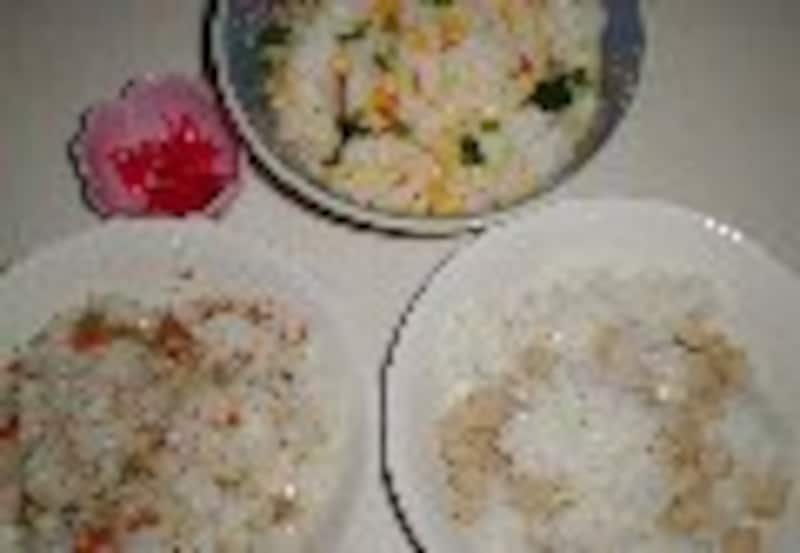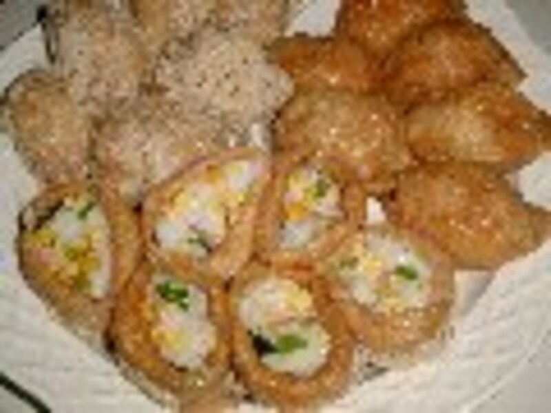 私が小さい頃は、遠足といえばいなりずし、運動会といってもいなりずし、 お花見にも、お祭りにも、法事にだって、お稲荷さんがつきものでした。 最近では、めっきり出番が少なくなってしまったような気がします。が、あの、 甘い汁をたっぷり吸い込んだ油揚げと、ほどよく甘酸っぱい寿司飯の見事なコンビネーションは、そうそうすたれるものではありません。 さ、手作りお稲荷さんを抱えて、春を探しに出かけましょう! 日本人に生まれて本当に良かった。 花より 稲荷寿司 ■使用した材料■ 4人分 すし飯 ・米........3合 ・だし昆布........5cm角 ・酒........大さじ1 ・米酢.......1/3カップ(70cc弱) ・砂糖........大さじ2 ・塩.......小さじ2 皮 ・油揚げ.......大8枚 ・だし汁......2カップ ・しょう油......大さじ3 ・砂糖.......大さじ4 ・ミリン.......大さじ2 具 ・こうや豆腐........1枚 ・人参・牛蒡........あられ切り、大さじ1ずつ ・卵........1コ ・ベーコン........5cm ・缶詰コーン........大さじ1 ・茹でほうれん草.....少々 ・刻み紅生姜.....少々 ・青のり粉.....少々 ・ゴマ.....少々 ■作り方 1.米をといで水切りし、酒大さじ1杯を加え、こころもち少なめの水加減にし、5cm角の昆布を入れて炊く。 炊き上がったら、すぐに合わせ酢を混ぜて、うちわであおぎ、荒熱がとれたら自然に冷ます。 2.油揚げを半分に切り、袋状に開き、半分を裏返す。 3.熱湯で5分ほどゆでて油抜きし、水にさらし、手で挟むようにして水を絞る。 4.鍋にダシ汁、砂糖、しょう油、ミリン、油揚げを入れ、落し蓋をして、弱火で15~20分間煮含め、そのまま冷ます。 5.高野豆腐を戻し、小さいサイコロ状に切り、ダシ1カップ、みりん小さじ2、塩ひとつまみ、 しょう油小さじ1、砂糖大さじ1に入れて、5分ほど煮る。網じゃくしですくって取り出し、残った汁で牛蒡と人参を炒り煮する。 6.いり玉子を作る。細く切ったベーコンとコーンをフライパンで乾煎りする。 7.それぞれをすし飯に混ぜる。 8.ご飯を軽く握って油揚げにつめる。 9.すし飯が残ったら、巻きすの上にラップを敷き、ご飯と残った具を真ん中に置いて、 巻く。青海苔粉をまぶす。 10.(1)高野豆腐と昆布(米と炊いた昆布を油揚げの煮汁に入れておいたもの) (2)コーンと炒り玉子とほうれん草 (3)牛蒡と人参(4)白ゴマと紅生姜、の四種類を詰める 11.稲荷寿司と、青海苔の巻き寿司を盛り合わせる。 ●油揚げの大きさは、地域によってかなりの違いがあるようです。稲荷寿司の形も、 関東では四角、関西では三角が多いとも言われます。 今日使用した油揚げはかなり大きい長方形でしたので、四半分に切りました。 三角形に見えますが、実は四角です。こちらで大きな画像がご覧になれます。 【巻きずし】 【握りずし】 12次のページへ