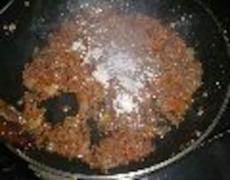 4.野菜をみじん切りにする。牛肉を細かく切る(挽肉でもよい)。