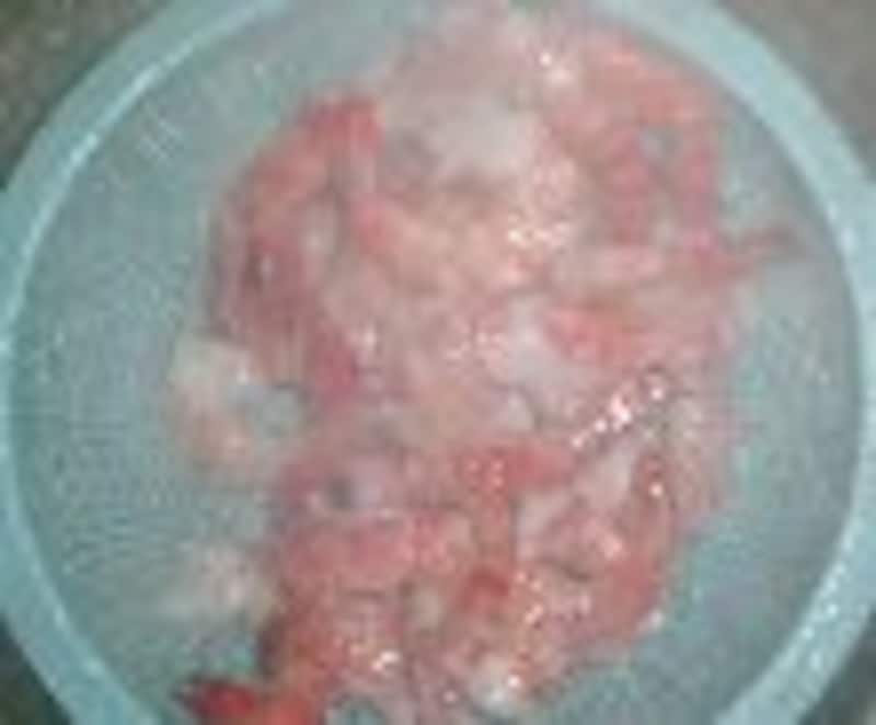 ■エビチリの作り方■ 1.(冷凍エビの臭み消し)えびを解凍し、殻をむき、背ワタを取り、ボールに入れる。 塩・片栗粉・水各少々を加えてもみこみ、流水で洗い流す。 2.洗ったエビを布巾で包んで水気をとる。 3.下味調味料の、酒・塩・コショウ・(旨味調味料少々)を加えてもみ、卵白を加えて更にもみこんで、ごま油と片栗粉を 混ぜて、最後にサラダ油大さじ1を加えてサッと混ぜ合わす。20分おく。 4.沸騰した湯にサラダ油小さじ1加えて、エビをさっとゆがき、ザルにとる。水気を拭き取る。 5.フライパンを熱し、サラダ油大さじ2でニンニクと生姜と、長ねぎの半量を炒め、香りが出たらエビを入れていため、あいてる場所に豆板醤を加えて炒めて、合わせる。 6.スープ、ケチャップ、酒、塩、砂糖を加え、エビにからめる。残りの長ねぎを加える。 7.水溶き片栗粉を加えてトロミをつけ、ごま油小さじ1とサラダ油小さじ1を回し入れる。 最後に、酢を数滴たらす。 豆板醤よりクセのない、ラー油で作るチリソース煮もご覧ください。 ひとこと エビの殻を尻尾の部分だけ残しましたが、尻尾の後ろに付いてるとんがった部分だけは、指で折って取って下さい。 口ざわりがよくなり、臭みも取れます。豆板醤の代わりに、 ラー油やタバスコを使うと、また違った味わいが楽しめます。(辛いので分量に注意!) ●フライパンで作る簡単エビマヨ 【編集部おすすめの購入サイト】Amazonで人気レシピの書籍をチェック!楽天市場で人気レシピの書籍をチェック!前のページへ12※記事内容は執筆時点のものです。最新の内容をご確認ください。※衛生面および保存状態に起因して食中毒や体調不良を引き起こす場合があります。必ず清潔な状態で、正しい方法で行い、なるべく早めにお召し上がりください。また、持ち運びの際は保存方法に注意してください。