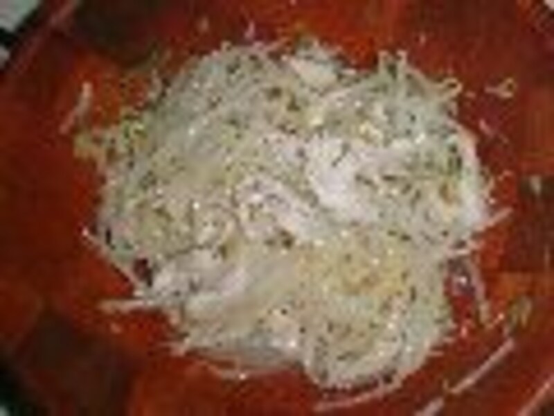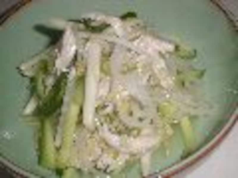 今日の料理は、主菜をひきたてる副菜としておすすめしたい、 サラダ感覚で食べられる、もやしの酢の物です。ネギラーメンでお馴染みの、ピリっと辛いネギをたっぷりのせました。冷やして、シャキシャキお召し上がりください。 ネギもやし ■材料■ 四人前 ・もやし........1袋(250g) ・ササミ........2本 ・胡瓜........1本 ・林檎........1/4コ ・大根........50g ・長ねぎ........1本 調味料(A) ・酢........100cc ・塩........小さじ2 ・砂糖........小さじ1 ・ごま油........小さじ2 ネギの調味料(B) ・ラー油.......小さじ1 ・しょうゆ........小さじ1 ・酒........小さじ1 ・砂糖........小さじ1 ・ごま油........小さじ1 ・コショウ.......少々 ■作り方■ 1.もやしをゆでるための湯をわかす。ボールに(A)の調味料を合わせておく。 2.湯が沸騰したら、ササミをゆでる。その湯でもやしをサッとゆがき、ザルにとる。 3.熱いまま、1.のあわせ酢に入れる。ササミを手で裂いて加え、混ぜる。 4.キュウリ、りんご、大根をマッチ棒ほどの太さの千切りにする。 5.(3.)のボールに入れて混ぜ、冷やす。 6.器に中高に盛りつける。 7.長ねぎを斜めの千切りにし、(B)の調味料で和えて、もやしの上に天盛りする。 ●もやしが主役の和え物です。その他の野菜は冷蔵庫にあるものを使いました。 レタスや人参、春雨等もよく合います。 【編集部おすすめの購入サイト】Amazonで人気レシピの書籍をチェック!楽天市場で人気レシピの書籍をチェック!※記事内容は執筆時点のものです。最新の内容をご確認ください。※衛生面および保存状態に起因して食中毒や体調不良を引き起こす場合があります。必ず清潔な状態で、正しい方法で行い、なるべく早めにお召し上がりください。また、持ち運びの際は保存方法に注意してください。