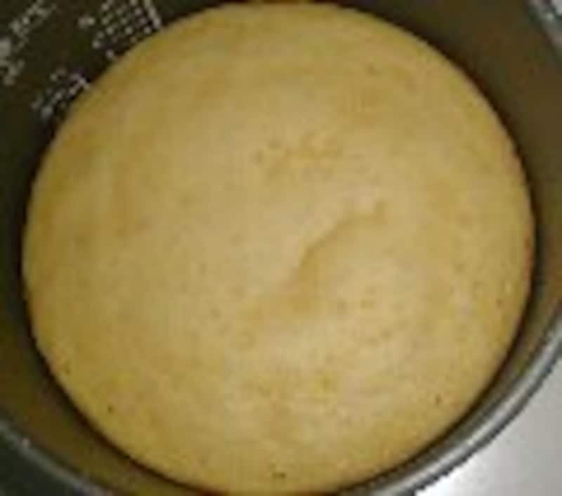 見て見て!すごいでしょ!これ、炊飯ジャーで作ったケーキに見えます? 見た目だけではありません。味も絶品保証付き。子供の日にでも作ってみませんか。 生クリームや季節の果物で飾りつけしたら 立派なデコレーションケーキができあがることでしょう。 ※炊飯ジャーで料理する際の注意点 簡単ヨーグルトケーキ ■材料■ ・小麦粉........200g(2カップ) ・タンサン(重曹).........小さじ2 ・砂糖.........110g(1カップ) ・塩........一つまみ(3本指で) ・プレーンヨーグルト..........100cc(1/2カップ) ・レモン汁........大さじ1 ・卵..........2コ ・サラダ油..........50cc(1/4カップ) ■作り方■ 1.ボールに小麦粉、タンサン、砂糖、塩を入れて泡立て器でかき混ぜる。 2.その他の材料を(1.)に加えて 泡立て器でかき混ぜる。 3.炊飯ジャーの内釜にサラダオイル(分量外)を薄くぬる。 4.ゴムベラを使って流し入れる。スイッチを入れる。 5.スイッチが切れたら炊飯器から出す。1分ほど放置する。(ケーキが縮んで取り出しやすくなる) 6.仕上げは、そのままか、お好みで 粉糖やアプリコットジャムをぬる。 ひとこと 使用した炊飯ジャーは一升炊き用です。五合炊き用でしたら、三分の二か、半分の分量で作ってみてください。 重曹がこんがり焼き色をつけてくれます。こんなには色がつきませんが、ベーキングパウダーでも大丈夫です。重曹のスースーする独特の味が苦手な方も、ベーキングパウダーを使って下さい。 11/13UP! 【5合炊き炊飯器用ヨーグルトケーキのレシピ】 ※炊飯器でケーキ作り上級編→ヨーグルトチーズケーキ 12次のページへ