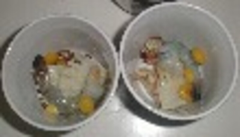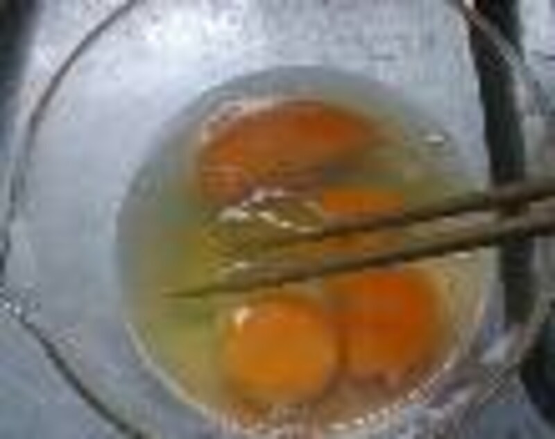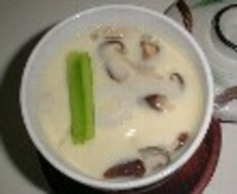 ■作り方■ 1.(ササミは削ぎ切りにし醤油を少量まぶす) 海老は尻尾だけ残して殻をむき、酒を少量まぶす。小松菜はさっと茹でる。銀杏はフライパンで から煎りし、熱い内に包丁の上から手で叩いてつぶして剥く。(薄皮まで綺麗にむける) 2.だし汁を調味して人肌程度以下に冷ます。卵を泡立てないように割りほぐし、調味しただし汁を加える。 (なめらかに仕上げたい場合はこし器にかける) 3.蒸し茶碗に具を入れる。2.の卵液を注ぐ。 4.蒸す。 ◆(蒸し方1:基本)湯気の上がった蒸し器に入れる。しずくが落ちないように 布巾をはさんで 蓋をして強火で2分(白いマクがはったようになる)→弱火で10~13分間(ダシの温度による)蒸す。 ◆(蒸し方2:応用編)湯気の上がった蒸し器に入れる。鍋と蓋の間の端っこに菜箸を1本挟み、少し隙間があいてる状態にして、 強火で約7分間蒸す。(一定温度より高温にならないのでスができない。蓋が斜めになってるので食品にシズクが直接かからない) 5.茹でた小松菜をかざる。(三つ葉なら生のまま茶碗蒸しに混ぜて蒸しても、茹でて飾ってもどちらでもかまいません) ★次のページでは蒸し器を使わずに 電子レンジで茶碗蒸しを作ります。 前のページへ123次のページへ