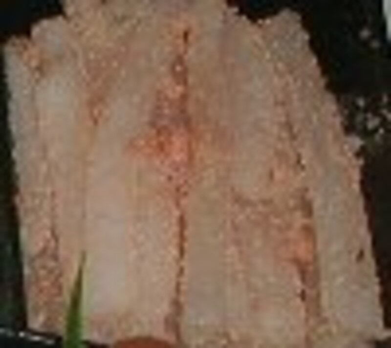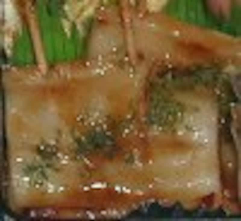 竹輪を半分に切り、切れ目を入れてひろげて串を打つ。片栗粉を薄くまぶす。フライパンで焼く。水、麺ツユ、砂糖少々を加えて煮からめる。