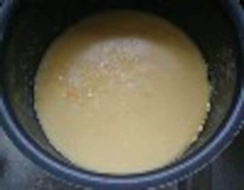 好評の 炊飯器でcooking♪ 今日 チャレンジするのは、カスタードプリン作り! これはちょっと難しいです。いえ、作るだけなら超簡単なのです。 では、何が?と言うと....、取り出すのが かなり大変! カラメルソースが下で良いのなら、どうってこともないのですが、 ひっくり返して プリンの形にするのが、難題なんです。 「圧力IHジャー炊飯器5.5合炊き」と、 「普通の電気炊飯器」 この二種類の炊飯器で作ってみました。時間的な差はかなりありますが、どちらでも作ることができました。 それと、糖分とカロリーを制限なさってる方のために、「パルスイート」カロリーゼロも 試してみました。 □ 炊飯ジャーで楽々クッキング&注意書き ****************************************** 炊飯器で作ったカスタードプリン ■使用した材料■ 4~5人分 カラメルソース ・砂糖........50g ・水........大さじ2 ・湯..........大さじ2 プリン液 ・卵........4コ (Lサイズ) ・牛乳........400cc ・砂糖..........80~90g (パルスイートなら30g) ・バニラエッセンス..........3~4滴 ・バター..........少量 ■作り方■ 1.ジャーの内釜の底にバターを薄く塗っておく。 カラメルソース作り 2.鍋に 水大さじ2と 砂糖を入れて 強火にかける。 3.煮詰まってきて 焦げ色が少しでも出きたら 弱火にする。 4.ゆっくり鍋を回して 全体的にカラメル色になったら 火を止める。 5.すぐに、左手で鍋を持ち、右手で湯大さじ2を加え、手に持った鍋を大きくすばやくグルグルまわして溶きのばす。 6.熱いうちに釜に流しいれる。冷やして固める。(釜の底を冷水に漬けるか釜ごと冷蔵庫に入れる。) プリン作り 7.カラメルソースを作った鍋に 牛乳と砂糖を入れて火にかけ 人肌程度に温めて 砂糖を溶かす。 8.よく溶きほぐした卵液に 牛乳を少しずつ加えて よく混ぜる。バニラエッセンスを加え、金ザルでこす。 9.(6.)の釜に流しいれ、「圧力IHジャー炊飯器」の場合は (一旦うまみ保温を選び) 再加熱スイッチを押す。 10分間の加熱が終わると保温に変わるので、保温のまま30分間待つ。 ※普通の一升炊き用炊飯ジャーで作った場合は、15分間炊いてからスイッチを切り、保温にして、 2時間かかりました。途中で数分間炊けばもう少し時間短縮できるはずです。また、ジャーが小さい方が時間は短くて済むかもしれません。 10.30分後、釜をあけて竹串をさしてみて、弾力があるようなら出来上がり。 11.荒熱が取れたら 冷蔵庫で冷やす。(又は氷水に漬けて 冷やす) ■取り出し方■ 1.釜の口の大きさにぴったりの 平たい皿を プリンの上に そっとかぶせて、いっきに裏返し、釜をゆすり、皿にプリンが載ったのを感じたら、 釜を誰かに外してもらう。(重いので片手ではちょっと外せない。) 2.皿の上のプリンを、静かに大皿に移す。 ・プリン液の方にだけノンカロリー甘味料を使い、カラメルソースを普通の砂糖にするだけでも、かなりカロリー減になります (味の面での違和感も全く感じません)が、 もっと ヘルシーにしたいならば、カラメルソースをやめて、蜂蜜やメープルシロップをかけて食べる事をお勧めします。 そうすれば、ひっくり返す苦労もしないで済みます。 ・バターを底の部分にしか塗らないのは、多少引っかかりがあったほうが、 ひっくり返す時に具合が良いからです。 ・カラメルソースを作った鍋を洗わずに牛乳を入れて温めると、鍋に付着した飴が溶けるので 後の始末が楽です。カラメルソースはゴムベラを使って、なるべく綺麗に落としておいてください。 【関連】 炊飯器でパンプキンプリン 蒸しプリン&電子レンジプリンの作り方 パンプディング 簡単・手抜き・再生料理 12次のページへ