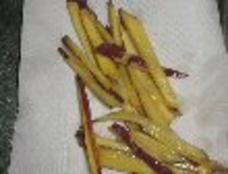 2.焼けたさつま芋をキッチンペーパーの上に取り出す。