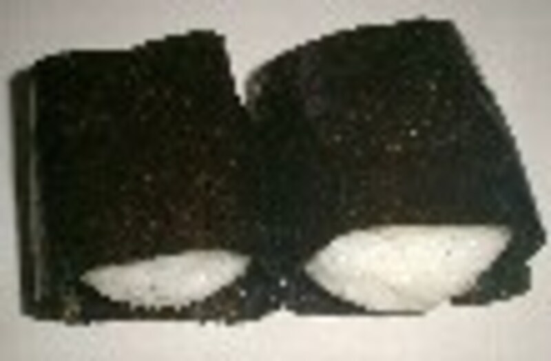 梅肉・オカカ・醤油を混ぜて具を作る。おにぎりを作る。海苔で巻く。※おにぎり作りのコツ