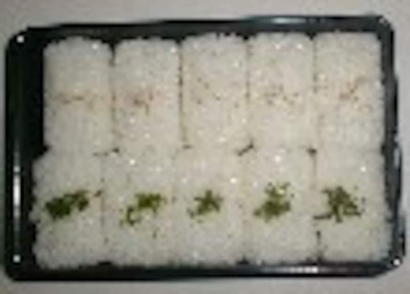 2.型から抜いて、弁当に並べる。ゴマと青のり粉をつける。