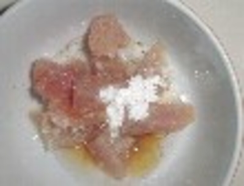 1.鶏肉を小さく切り、酒・塩コショウ・醤油・片栗粉・ごま油を少量ずつまぶし下味をつける。