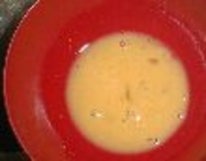 4.(2.)の卵液にいれる。アルミホイルカップにいれる。5.耐熱容器にホイルカップを入れて、周りにポットの湯を注ぎいれる。