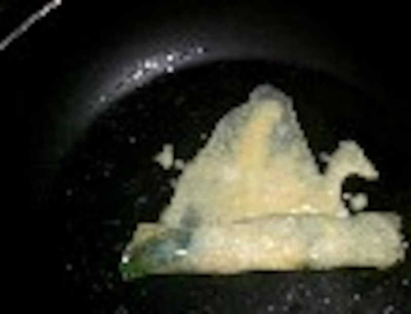 1.残りの卵を熱したフライパンに薄く流しいれる。