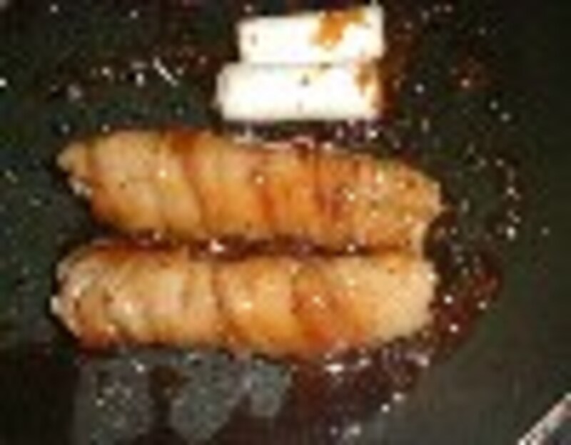 えのき茸に薄切り肉ギュッと巻きつける。フライパンで焼く。