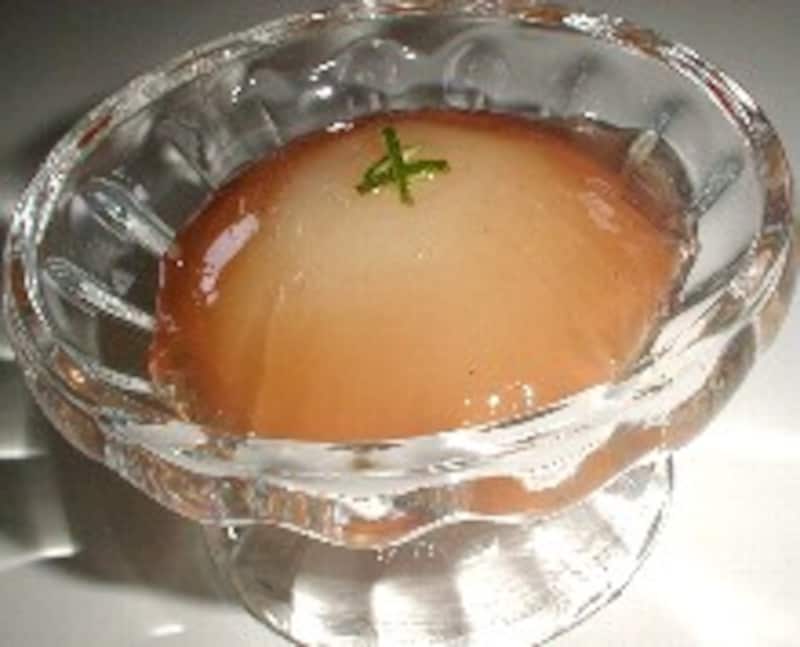 甚だ贅沢ではありますが、ラフランスを赤ワインで煮て、そのおいしさをゼリーで閉じ込めました。