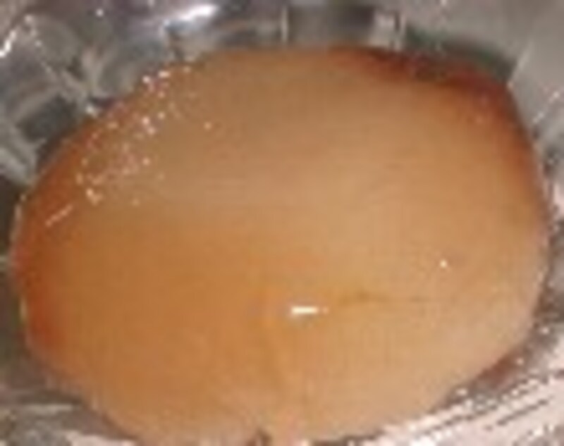 (ここで煮汁が300cc位になってるはず。心配な場合は量る)粉ゼラチンを振り入れて溶かす。