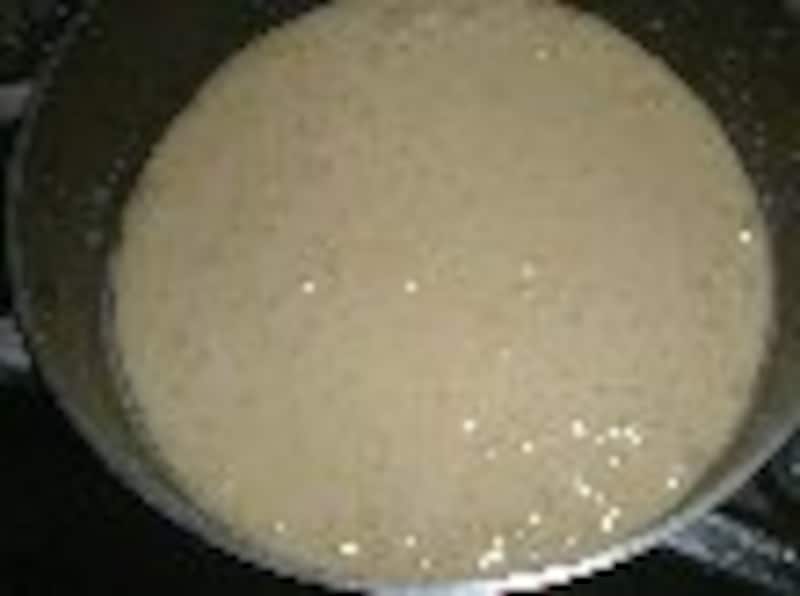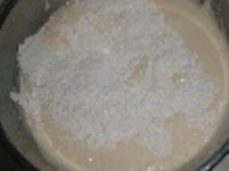 1.小麦粉を金のザルに入れてふるう。(新聞のチラシを利用するとよい。) 砂糖を量る。牛乳を量る。2.鍋にバターを(サラダ油でも可)塗り、小麦粉を薄くはたき、余分な粉を落とす。